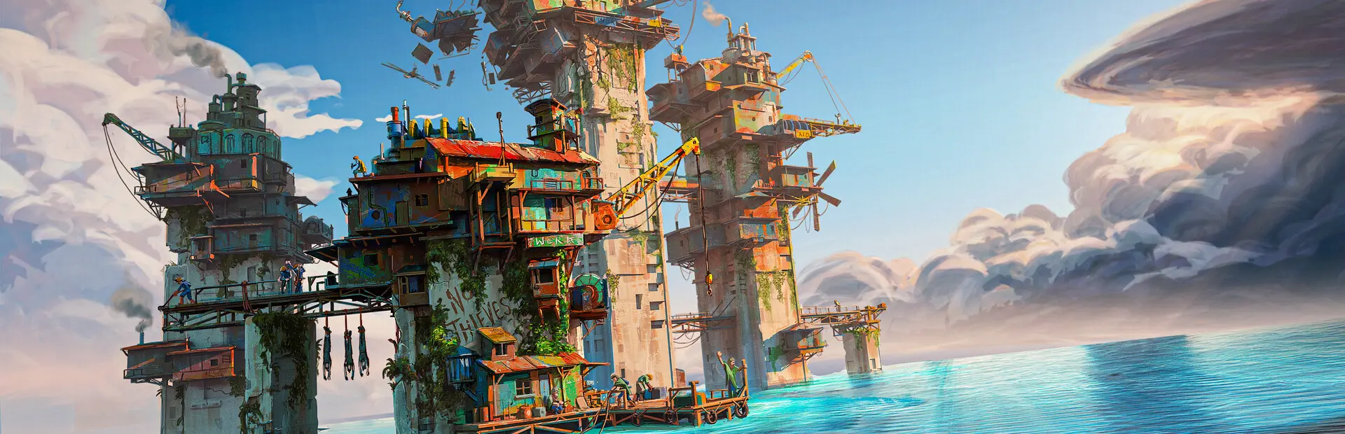 The gameplay of ALL WILL FALL revolves around surviving in a flooded world. Using more permanent structures, such as old skyscrapers and boats, you will construct scaffolding and walkways between them to expand your colony and acquire new resources. It's a pretty unique concept as far as "city-builders" go, and it makes some refreshing changes compared to others.