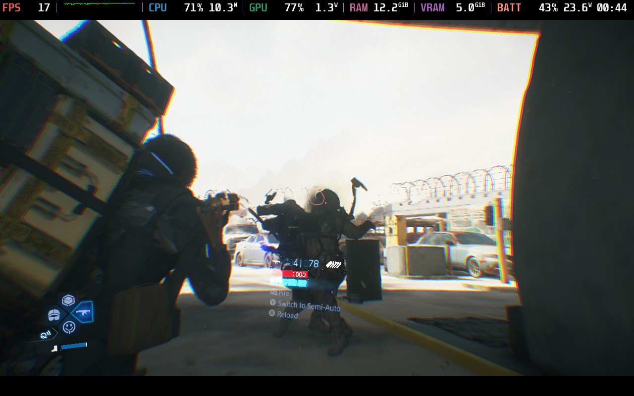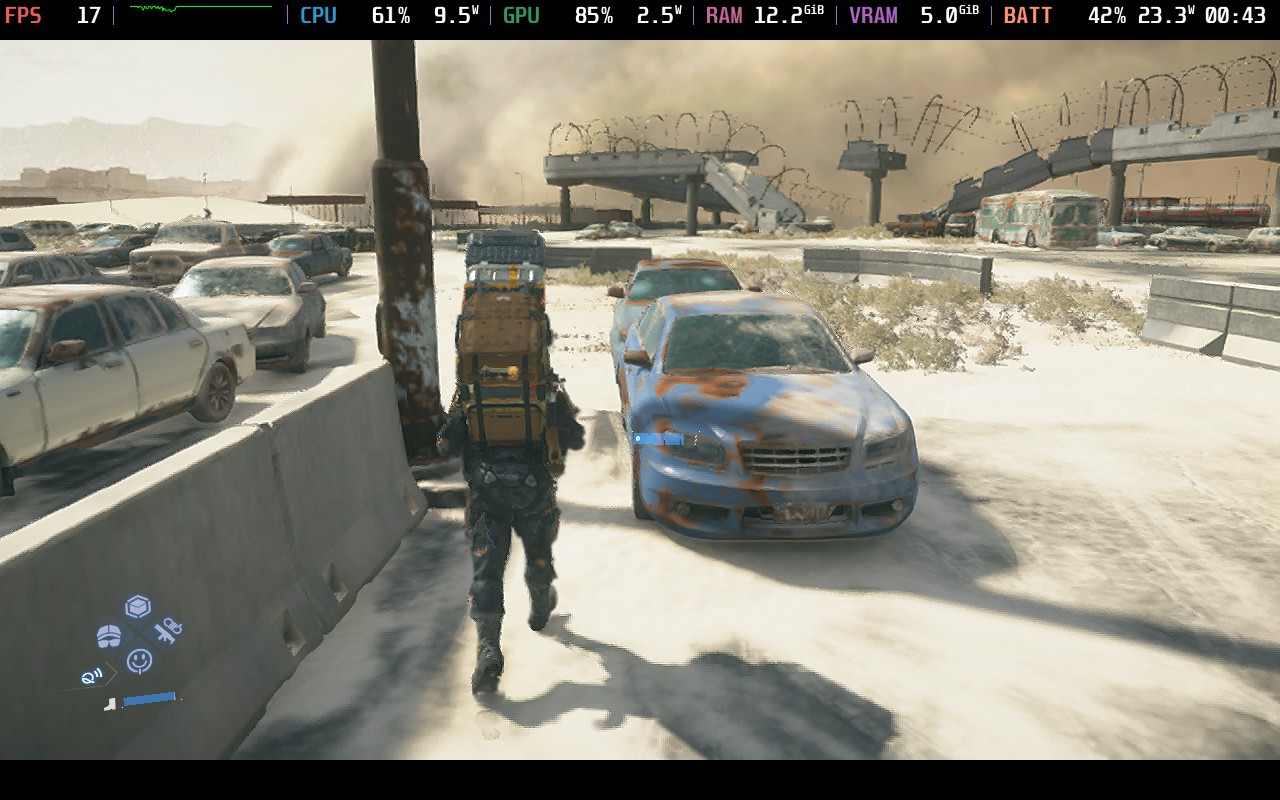 As soon as the game loads in, performance immediately tanks. With the portable preset, I was getting around 20-25 FPS. And this went further down the second I started moving. At one point, just walking around during the opening tutorial went down to 19 FPS consistently. I also noticed that in some scenarios, the low-quality preset performed better than the portable one. This was all with the PICO upscaling set to performance, which performs slightly better than FSR3 at ultra performance.