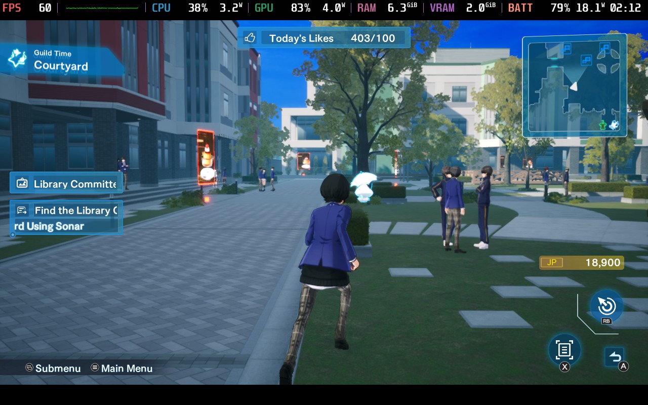 For the most part, it is playable, but it does drain on battery more than I expected. It's locked at 60 FPS, and defaults to Medium settings with SSAO on. In the glitch world, there seems to be no problem hitting 60 FPS at these settings. Running around in the first world ranged from 12W - 15W, while being around the actual high school usually sticks to 18W drain or higher when running around the school, with some scenes actually dropping the framerate.